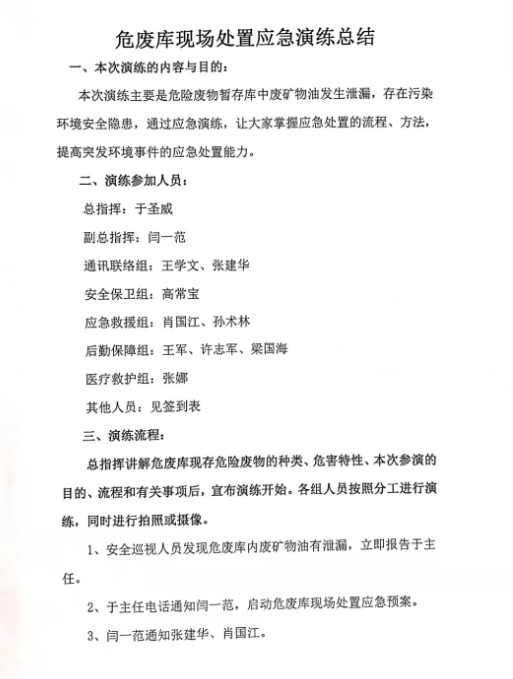 危廢庫(kù)現(xiàn)場(chǎng)處置應(yīng)急演練總結(jié)